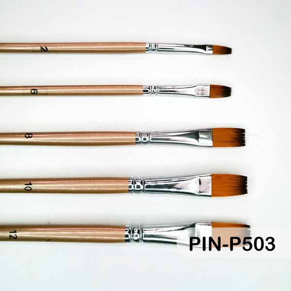 PINCEL GENÉRICO PAQUETE #503, 5 pinceles planos: #2, #6, #8, #10, y #12. Ideal para trabajos de arte, diseño y manualidades.