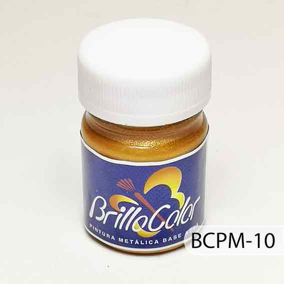 Pintura metálica Brilla Color de 20 ml, base agua, elaborada con pigmentos seleccionados. Se puede usar sobre cerámica, madera, MDF, cartón, papel, unicel, velas, jabón, y migajón. Ideal para trabajos de arte, diseño y manualidades.