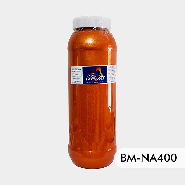 Pintura metálica Brilla Color 1lt Naranja NA-400, base agua, ideal para trabajos de arte, diseño y manualidades.