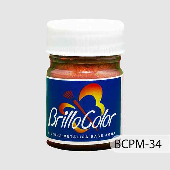 Pintura metálica Brilla Color de 20 ml, base agua, elaborada con pigmentos seleccionados. Se puede usar sobre cerámica, madera, MDF, cartón, papel, unicel, velas, jabón, y migajón. Ideal para trabajos de arte, diseño y manualidades.