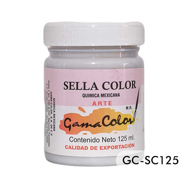 Sella color 125 ml, Adhesivo y fijador para decoración de telas, como barniz y tapa poro, vehículo para pigmentar, mezclable con pinturas Gama Color. Soluble al agua. De acabado semi-brillante transparente, como base para aplicar brillo barniz. Agitar vigorosamente antes de usarse.